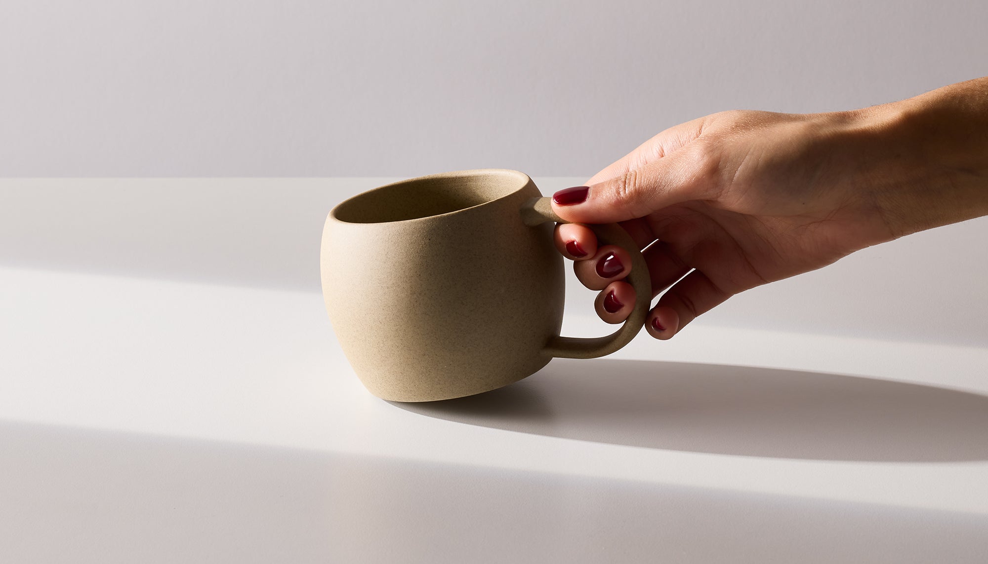 The shape is designed to perfectly nestle into the palm of your hand. It features an uncoated finish for a natural textural look and feel.