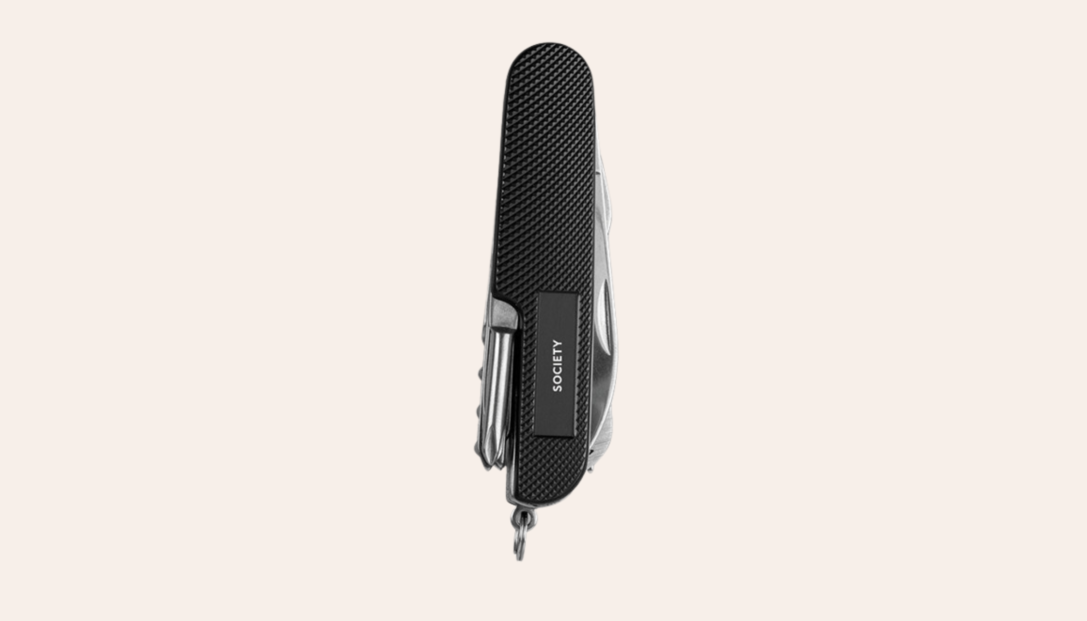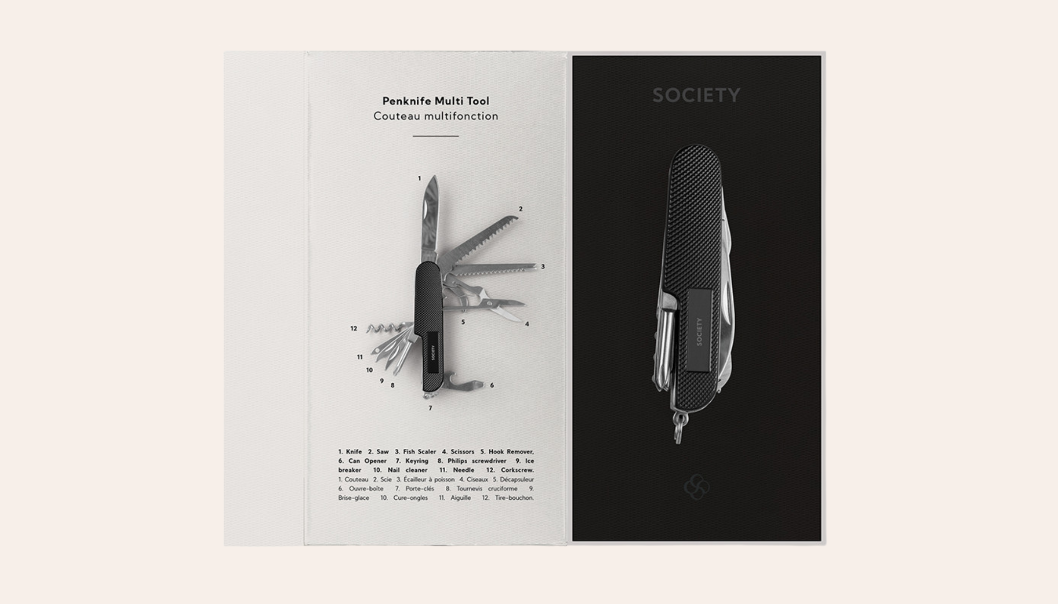 Society Paris sophisticated interpretation on the penknife offers 12 stainless steel tools.